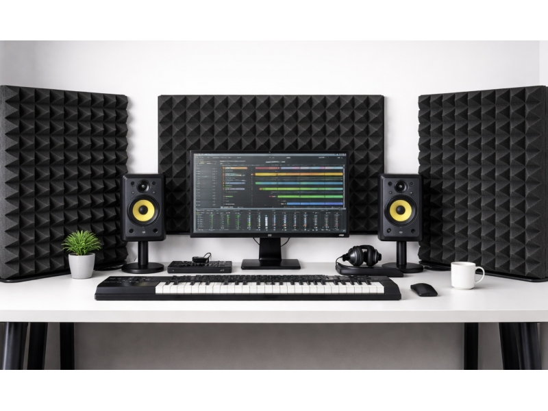 Конструкция выполнена из акустического поролона с пирамидальным профилем, который эффективно рассеивает и поглощает звуковые волны. Жёсткая основа из ДВП обеспечивает устойчивость и позволяет устанавливать ширму на стол без дополнительного крепления.