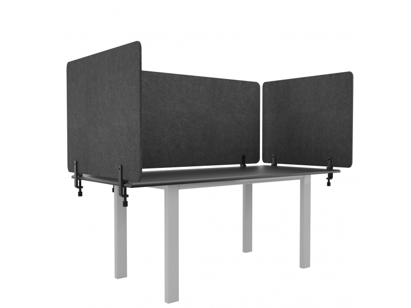 Виготовлені з щільного акустичного повсті, ширми підходять для офісів, коворкінгів, open space, а також домашніх і професійних студій звукозапису. Кріпляться до столу, створюючи зручну індивідуальну зону без необхідності стаціонарних перегородок.